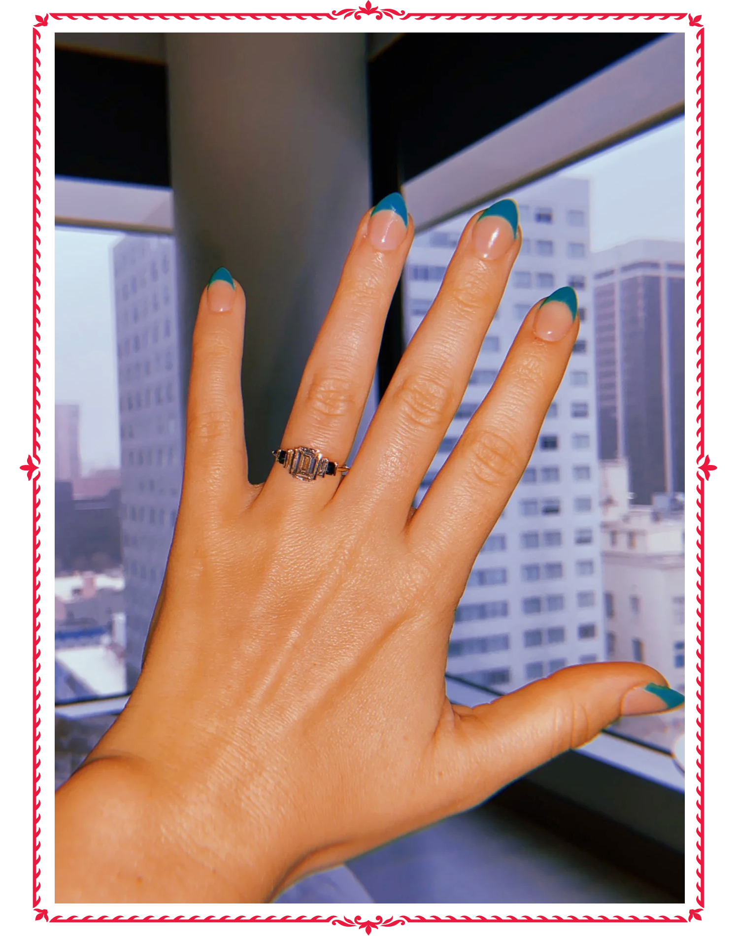 (*Note: If I had known this was happening I wouln’t have chosen nails with green tips… -P)